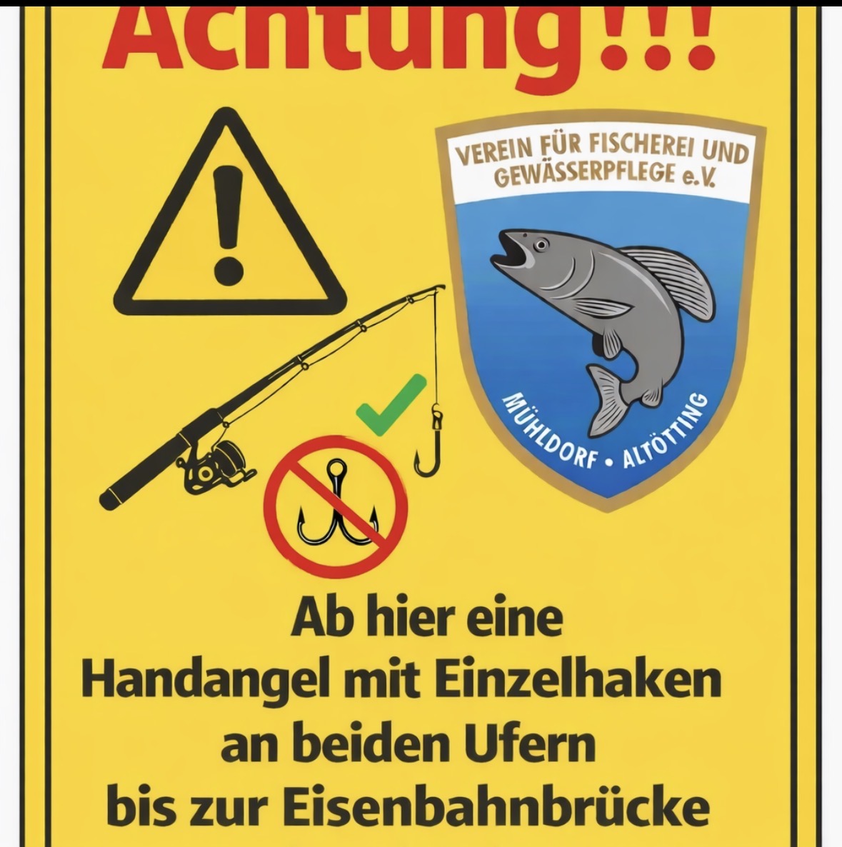 achtet bitte auf die neue Regelung am Inn 2: vom Vereinsheim abwärts bis zur Ehringer Eisenbahnbrücke gilt ab Saison 2026 fischen nur mit Einzelhaken mit nur einer Handangel. Nachzulesen in der Karte auf Seite 12 Abschnitt Inn 2. Fischen mit Blinker mit Drillingshaken ist nicht erlaubt. Ebenfalls Grundangel mit Drilling und mit zwei Angeln ist dort ebenfalls nicht gestattet. Angetroffene Fischer werden vom Aufseher gerügt und des Platzes verwiesen. Es werden demnächst noch Warntafeln aufgestellt. Das Thema wurde letztes Jahr bei den Monatsversammlungen besprochen und erklärt aber anscheinend nicht berücksichtigt, da es die letzten Tage bereits einige Beanstandungen durch die Aufseher gab. Daher die dringende Bitte setzt Euch mit der Jahreskarte auseinander und lest die Regelungen durch, damit es nicht zu unerwarteten Überraschunegn am Wasser kommt.